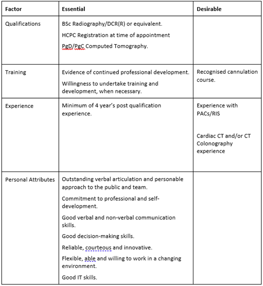 To actively participate in the provision of a high quality, effective and efficient Imaging Service to include general x-ray, theatre and CT. The post holder will ensure that high standards of service and patient care are maintained in accordance with the Company ethos and practice.