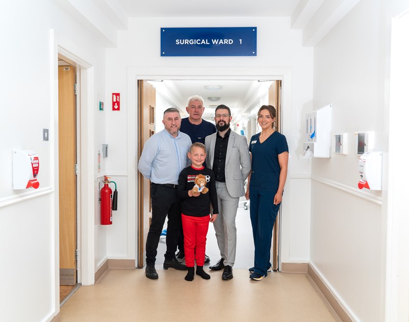 Pictured: Johnny Lynch, Consultant Greg McBride, young Louis Rogers, KPHNW GM Anthony McKenna and Nurse Sarah Convery