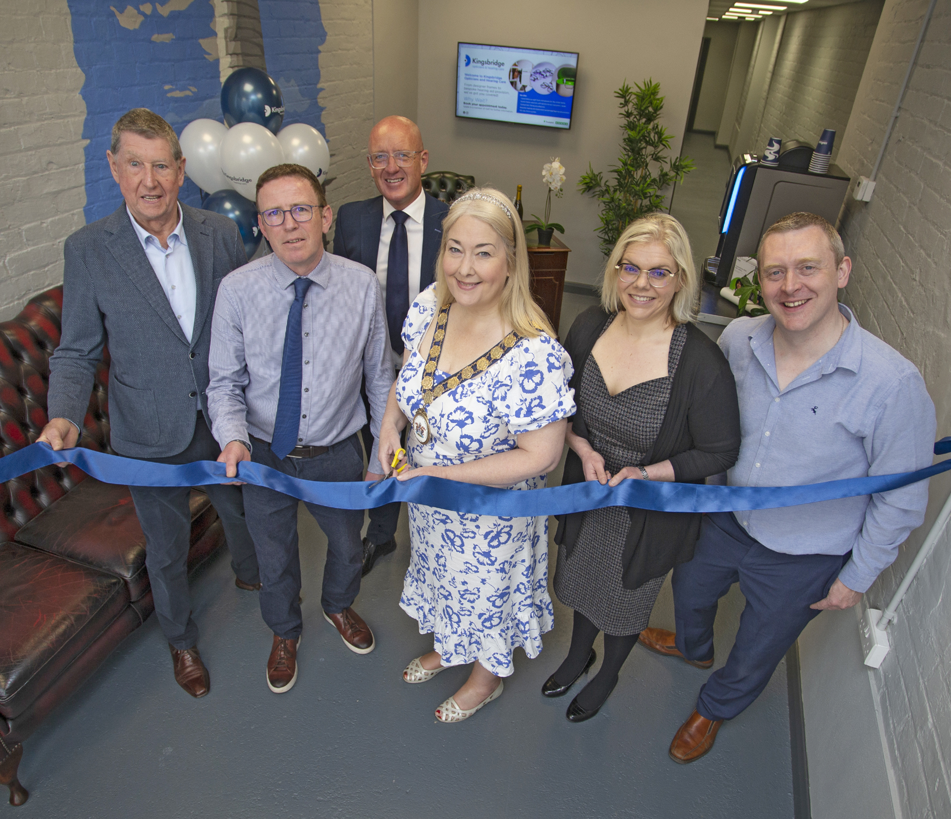 Pictured by The County Down Spectator: The Mayor of Ards and North Down Karen Douglas officially opens Kingsbridge Hearing Care in Donaghadee with Denis Waterworth, Donaghadee Community Development Association Chairman, Nigel Bradley, Manager of Kingsbridge Opticians and Hearing Care, Richard Sweeney, Head of Products and Services at Kingsbridge Healthcare Group and CEO of Kingsbridge Opticians and Hearing Care, Caroline Fenning, Audiologist and Stephen Hunter, Managing Director of Kingsbridge Opticians & Hearing Care.