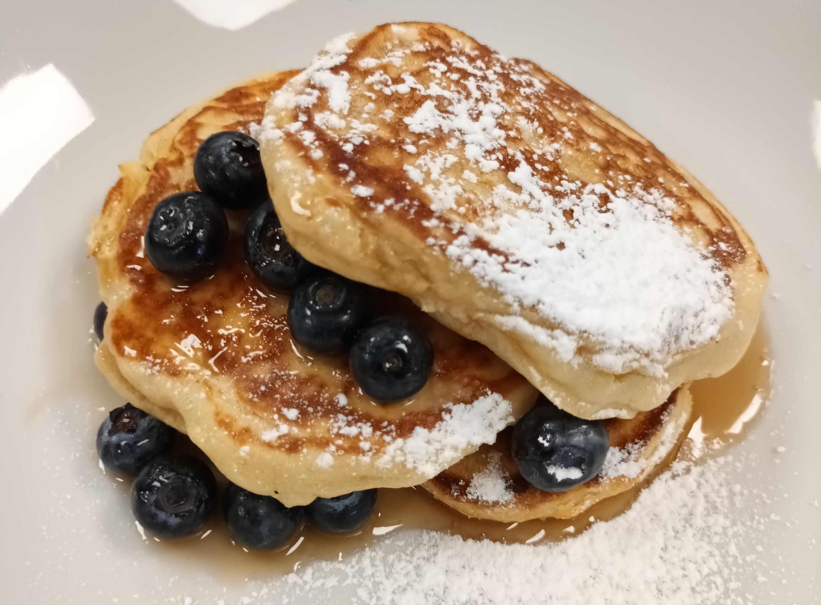 - Serve with maple syrup, blueberries and sprinkle with icing sugar.
