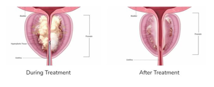 The prostate tissue then shrinks over the following 3-6 months and is designed to improve your urinary symptoms without the need for burning of removing any prostate tissue.